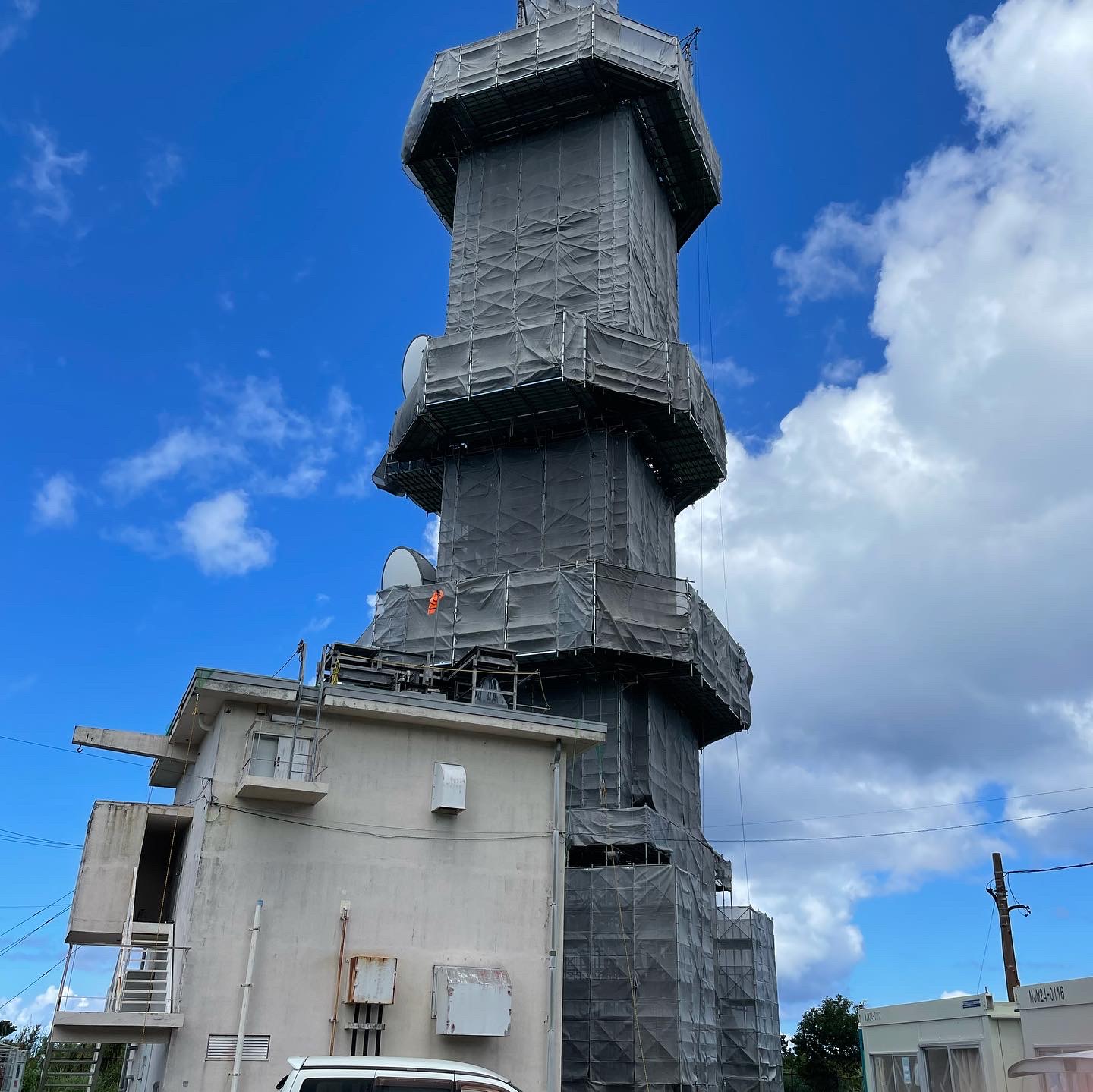 • Small lighthouse at bottom with ocean behind